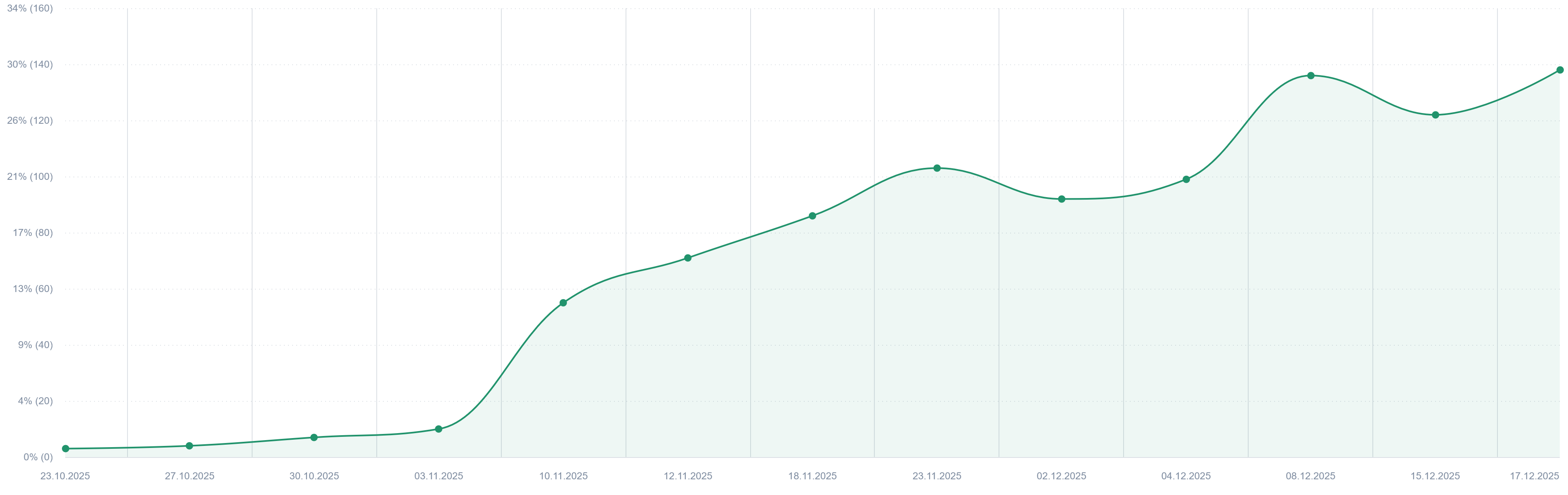 Главный показатель эффективности SEO - это не позиции, а реальный рост бизнеса: заявки, звонки, онлайн-оплаты и LTV клиентов из органики. Поэтому в первую очередь смотрят на органический трафик в Google Analytics 4 и Яндекс.Метрике, долю брендовых и коммерческих запросов, а также конверсии по целям. Дополнительно отслеживают динамику видимости в поисковиках через Topvisor или Serpstat - рост охвата запросов обычно предшествует росту трафика на 2–4 месяца. Важный метрикой остается средняя позиция по кластерам и доля трафика от топ-3 / топ-10.